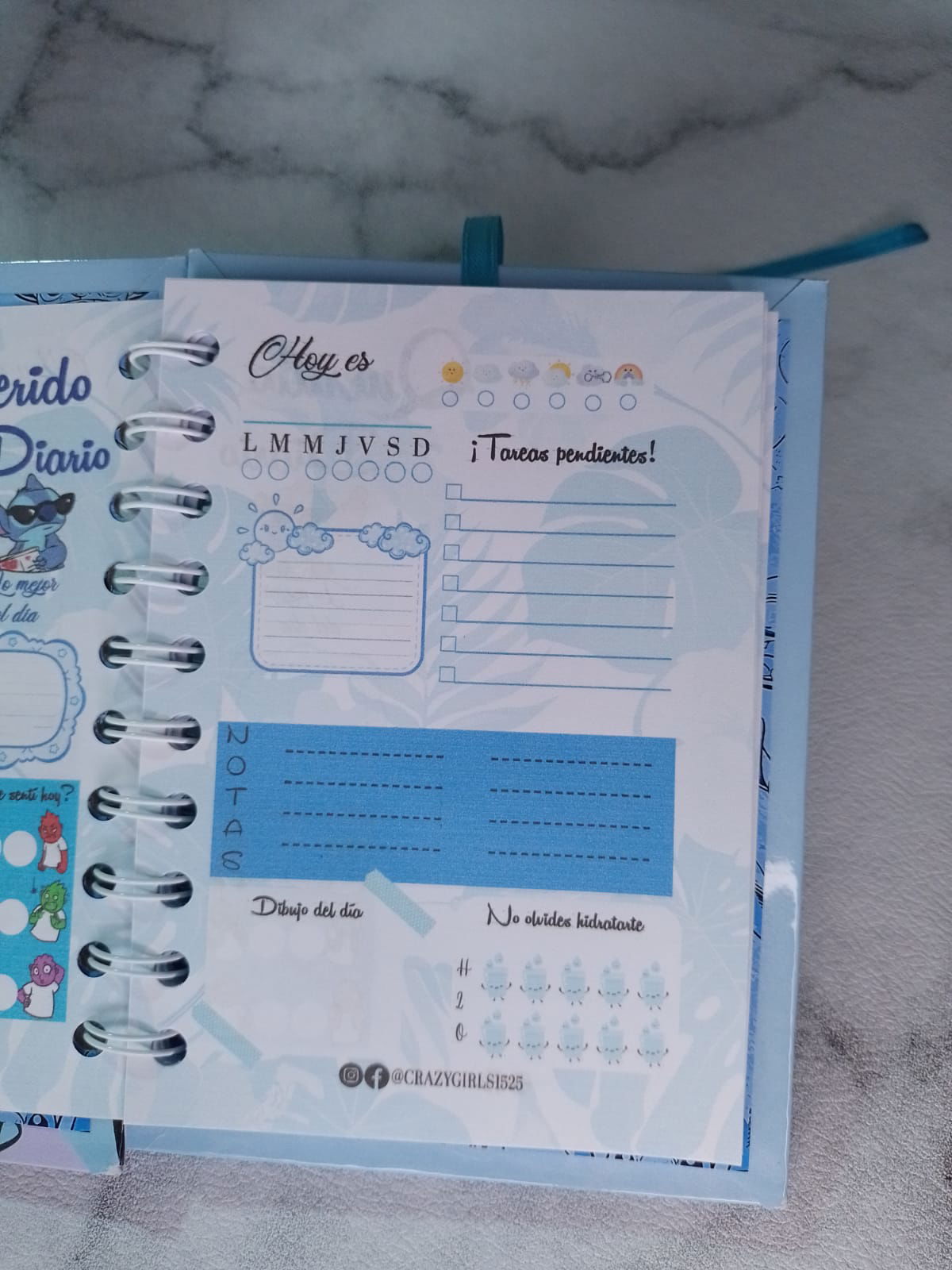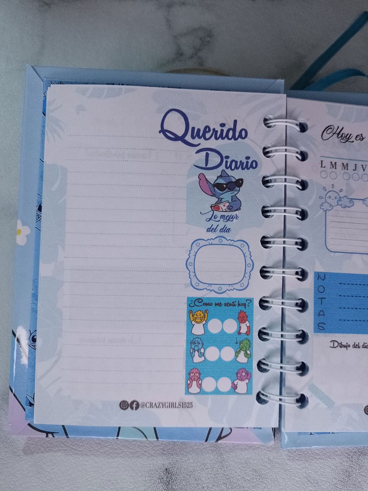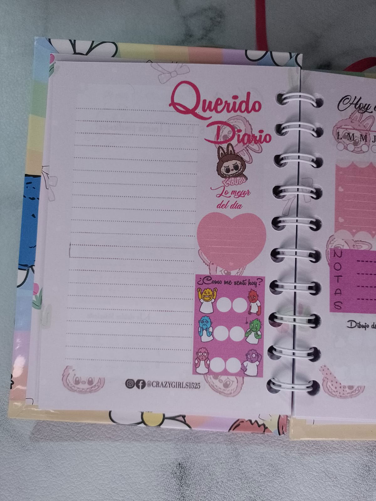 Diario inimo con una hoja para datos y hojas full color