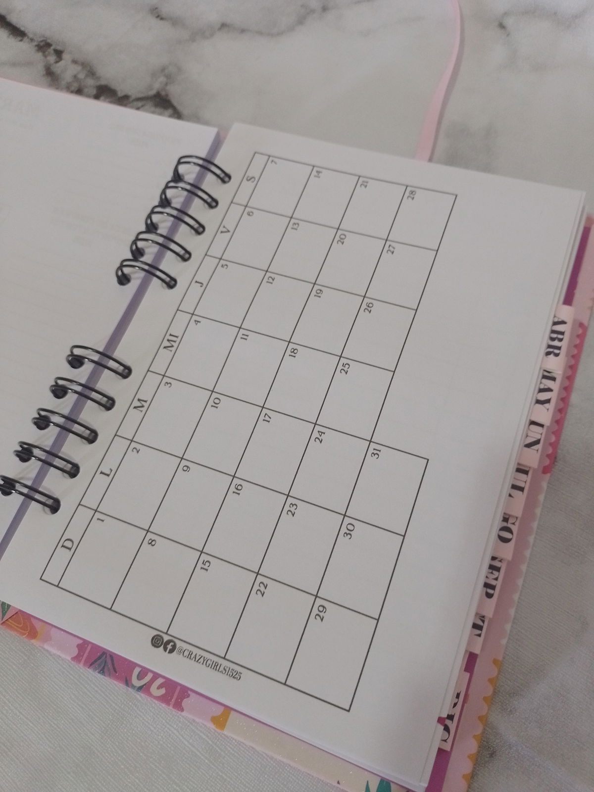 • Pestañitas mensuales para ubicarte fácilmente