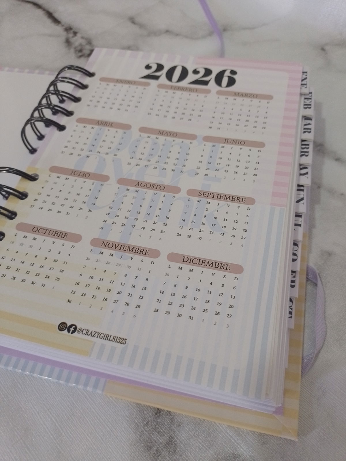 Una agenda pensada para acompañarte todo el 2026, ayudándote a ordenar tus días sin presiones y con mucho espacio para tus proyectos 💫