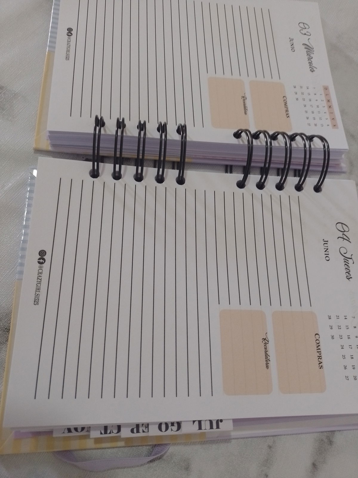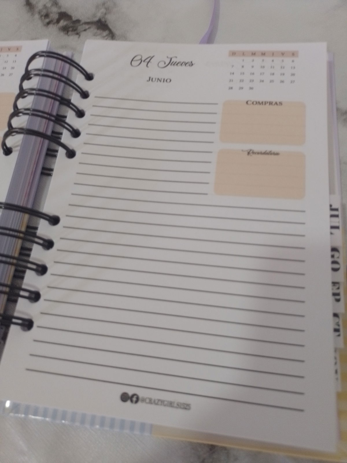 Esta agenda 2026 tamaño A5, con anillado metálico, está pensada para quienes disfrutan tener un día completo por página, con espacio suficiente para escribir sin límites y organizarse a su manera.