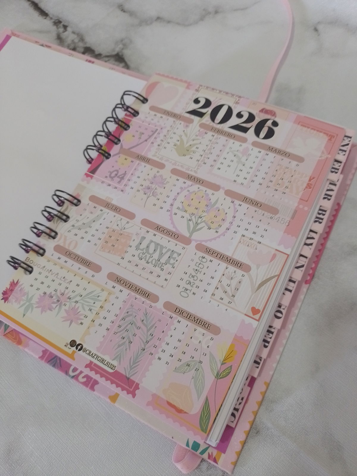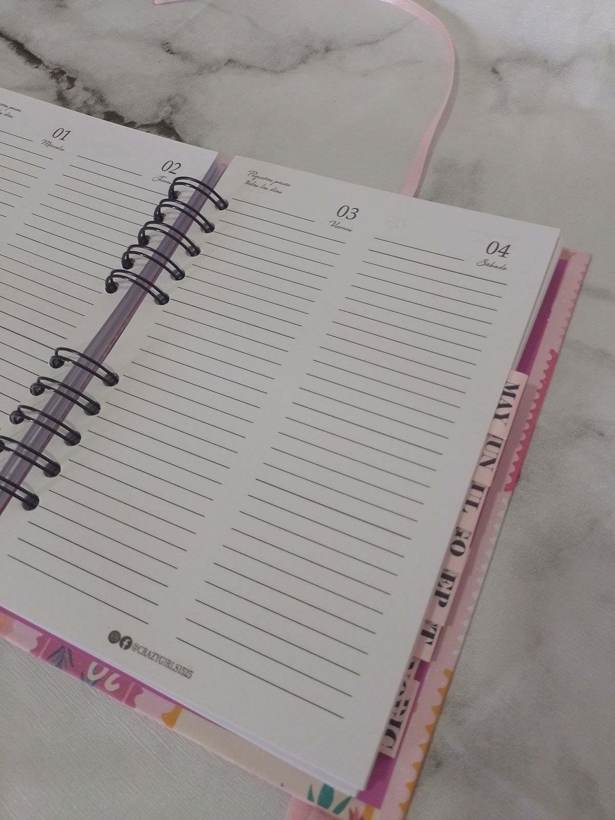 Tamaño A5, con anillado metálico y diseño funcional, esta versión estándar mantiene toda la estructura completa de organización, pero con formato diario vertical (dos días por página), ideal si preferís escribir sin horarios fijos.